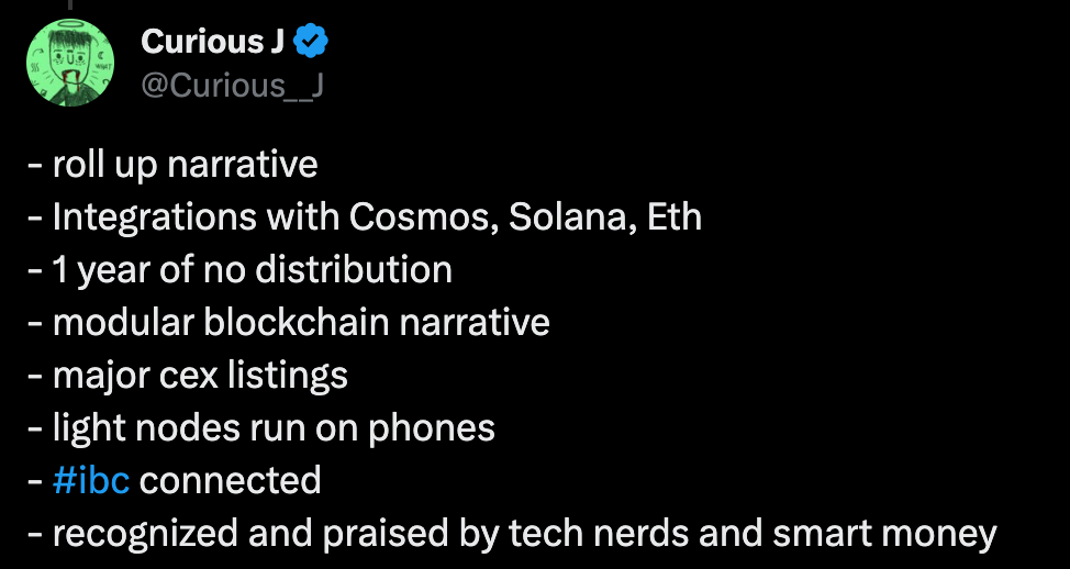 It’s just a big YouTube and normie coin and that’s exactly my thesis for TIA.