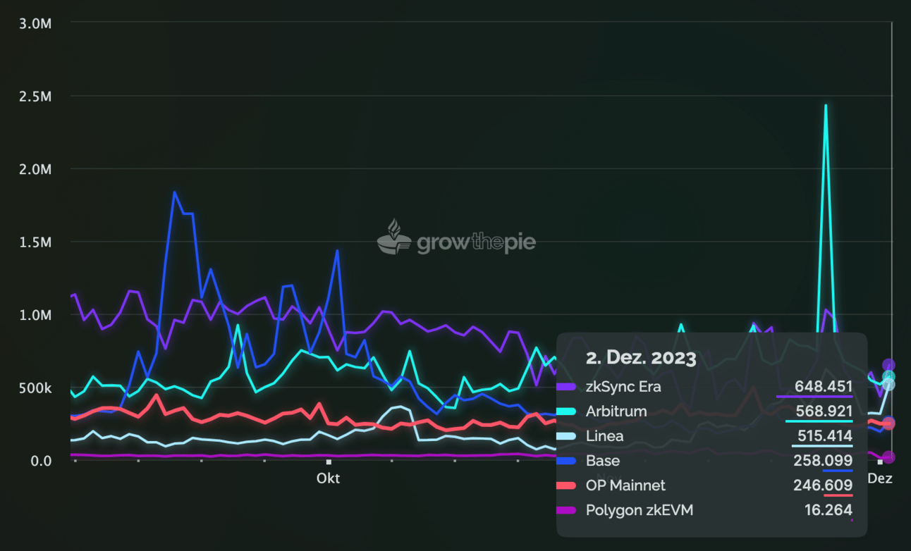 A big rise in txs on the Era and Linea rollup, which are likely Airdrop hunters. (With a small wallet I’d focus more on the not so obvious drops.)